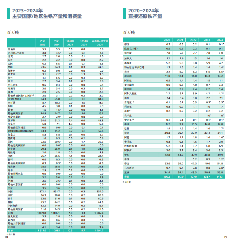 在技術創新方面,2023年鋼鐵行業將7.25%的收入用于新工藝和新產品研發,直接還原鐵產量從2020年的1.06億噸增至2024年的1.44億噸,印度、伊朗等國產量增長顯著,反映出低碳技術的推廣趨勢。